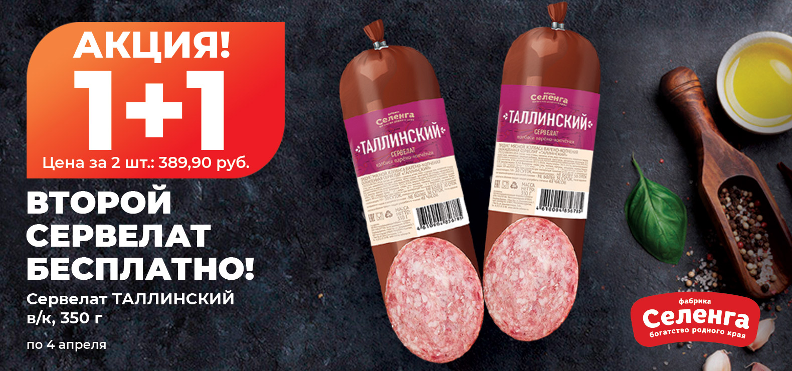 Мы запускаем горячую акцию для ценителей мясных деликатесов: покупайте один сервелат «Таллинский» (в/к, 350 г) — и второй получите абсолютно бесплатно!